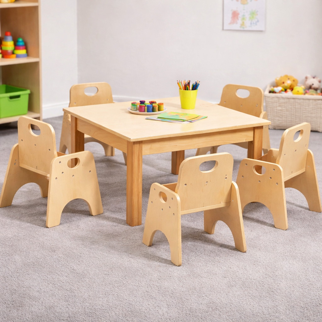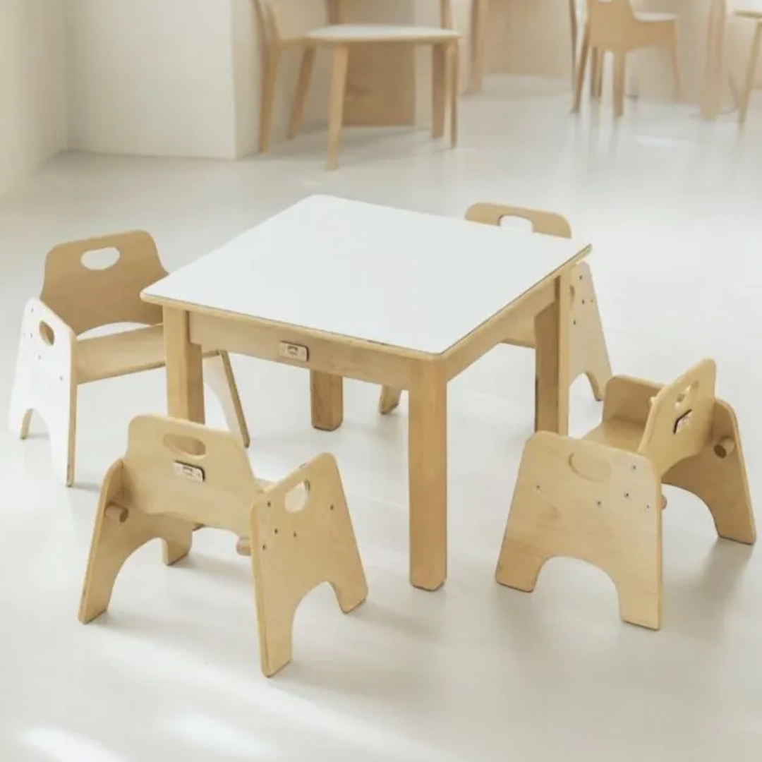 Eco Milk White Square Table + 4 x Wobbler Chairs
