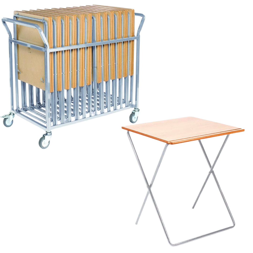 Metaliform Folding Exam Desk Trolley + 24 x Skid Base Exam Desks