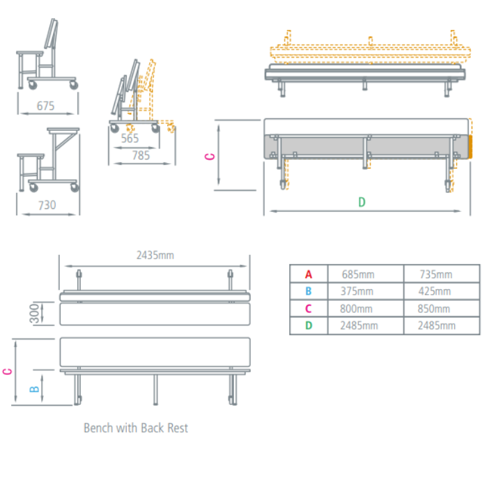 Spaceright Rectangular Convertible Folding Dining Table & Bench Unit - 3 Benches In 1 - 2435 x 730mm