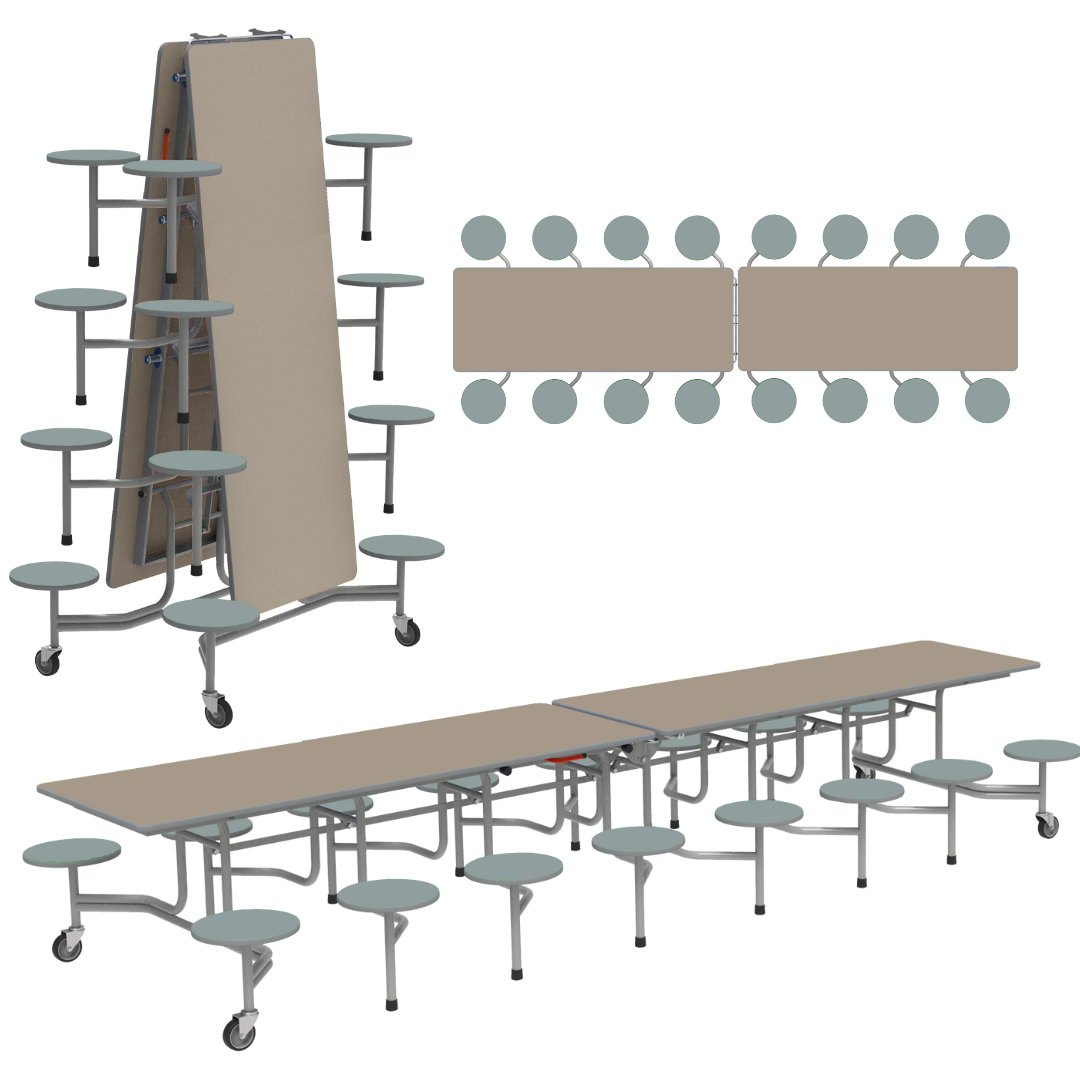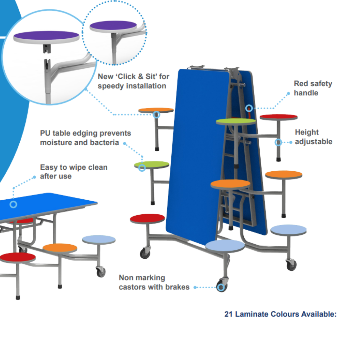 Gopak Go Roll Folding Dining Table With Stools - L3660 x W1500mm - 16 Seater