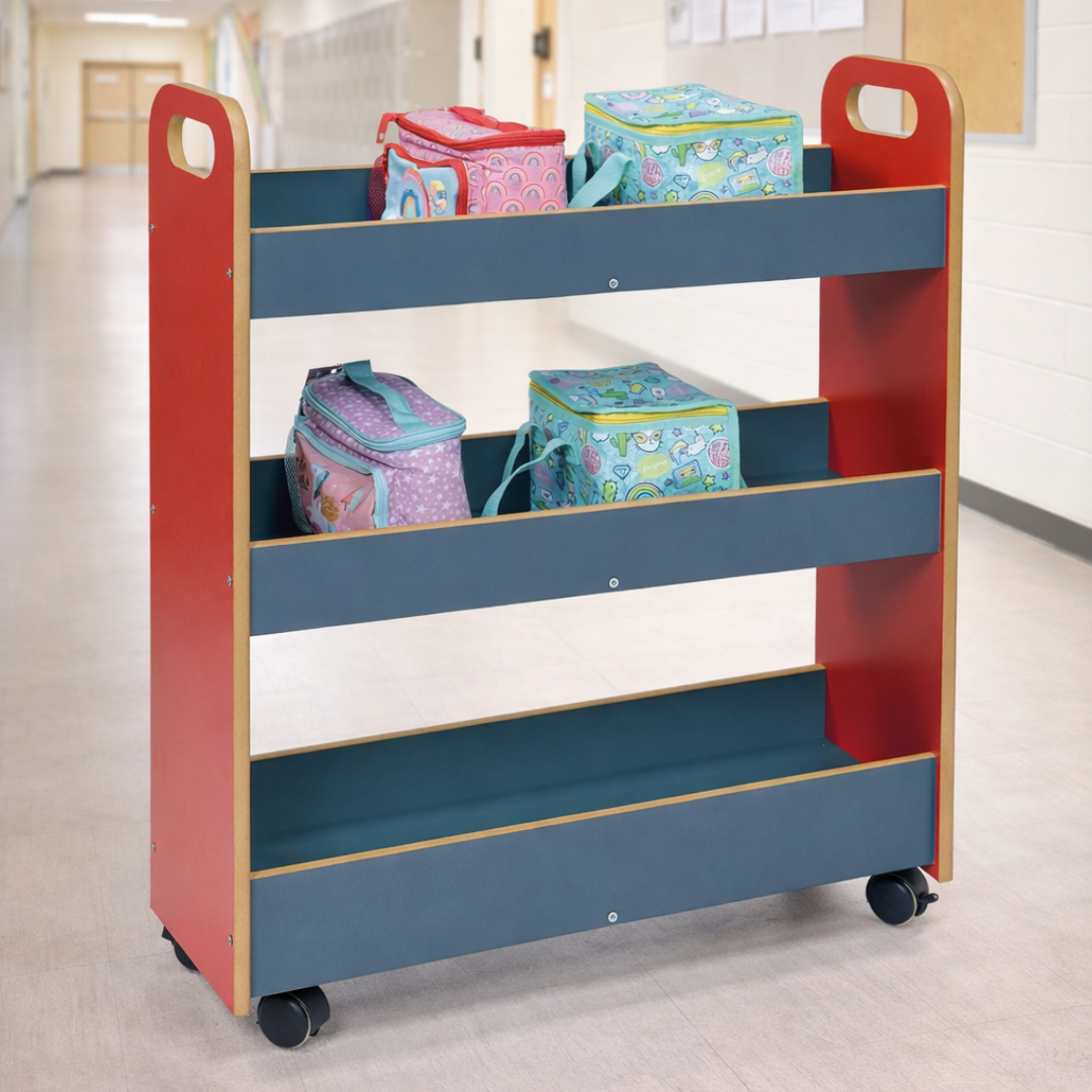 Mobile Wooden Lunchbox Trolley - Red/Blue