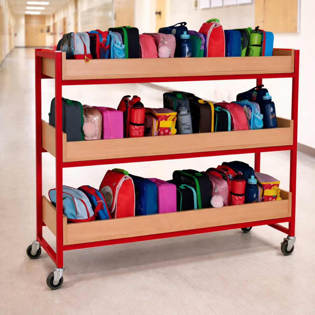 Mobile Wooden Lunchbox Trolley - Red/Blue