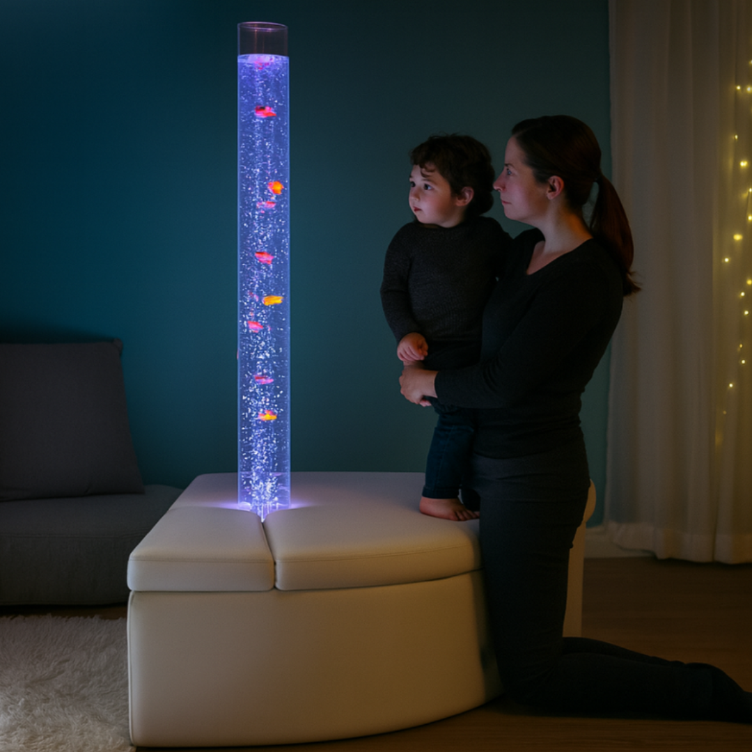 Bubble Sensory Light Tube 180cm & White Corner Padded Seat Plinth Base