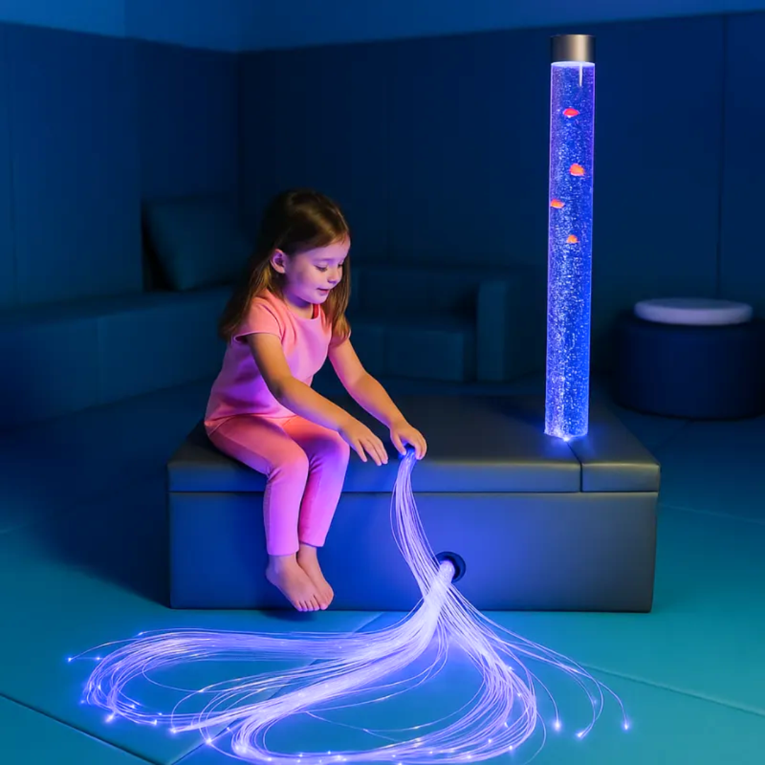Sensory Bubble Tube 180cm + Grey Padded Rectangular Plinth + Fibre Optic Light 100 Tails + 2 x Mirrors