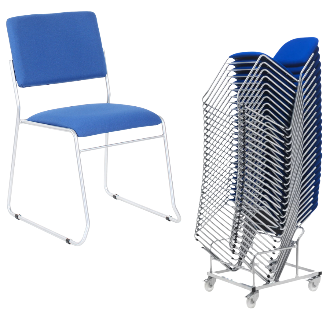 Urban Metal Framed Square Back Stacking Chair x 25 + Trolley