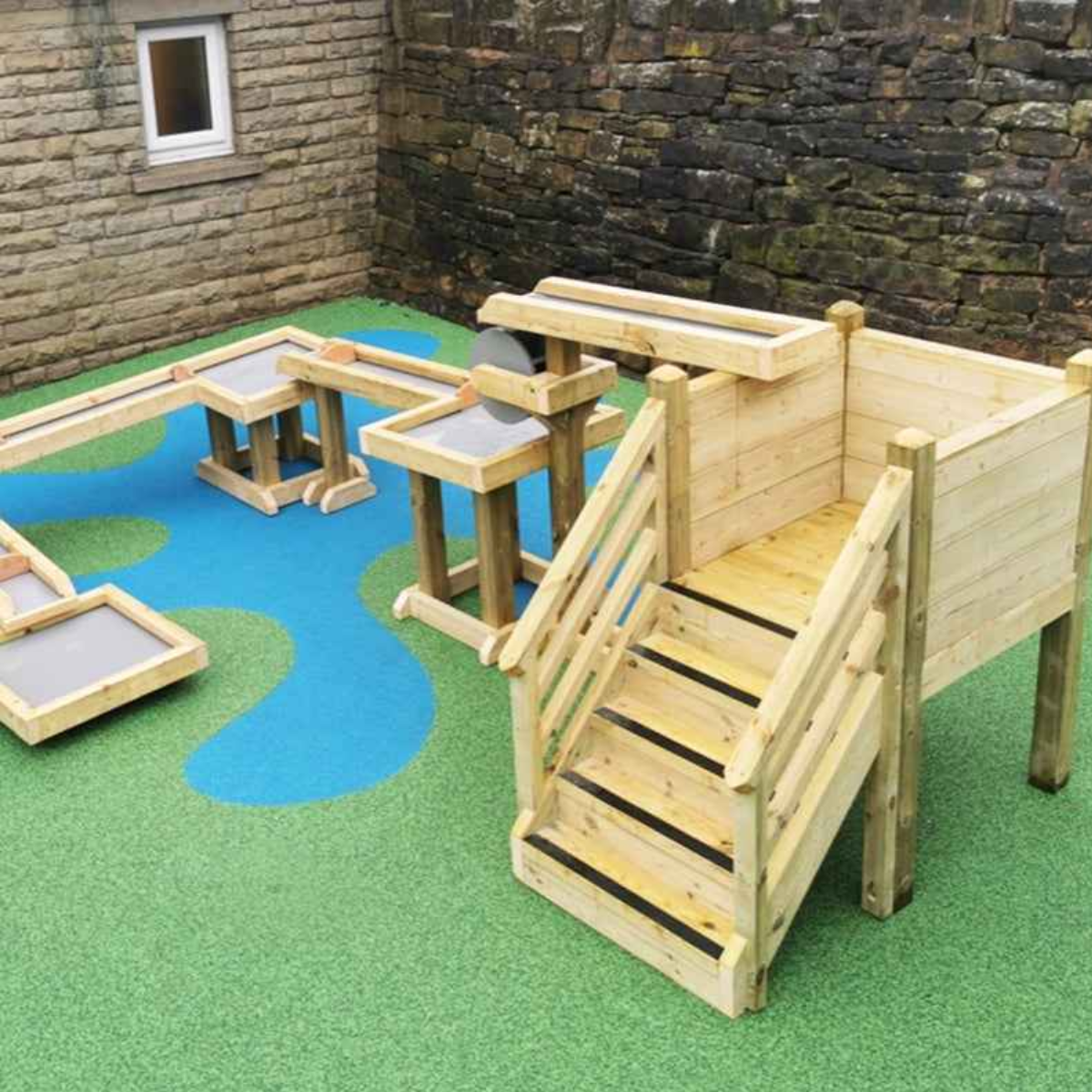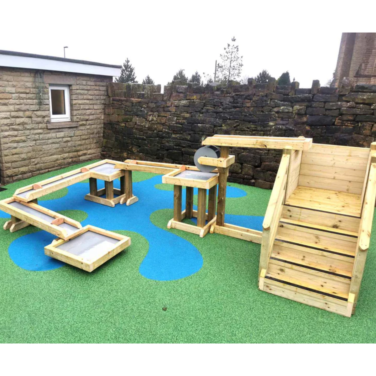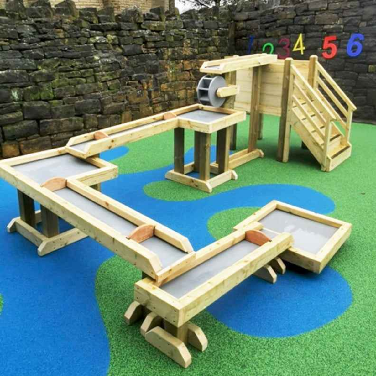 Outdoor Wooden Water Channel & Metal Stands Set