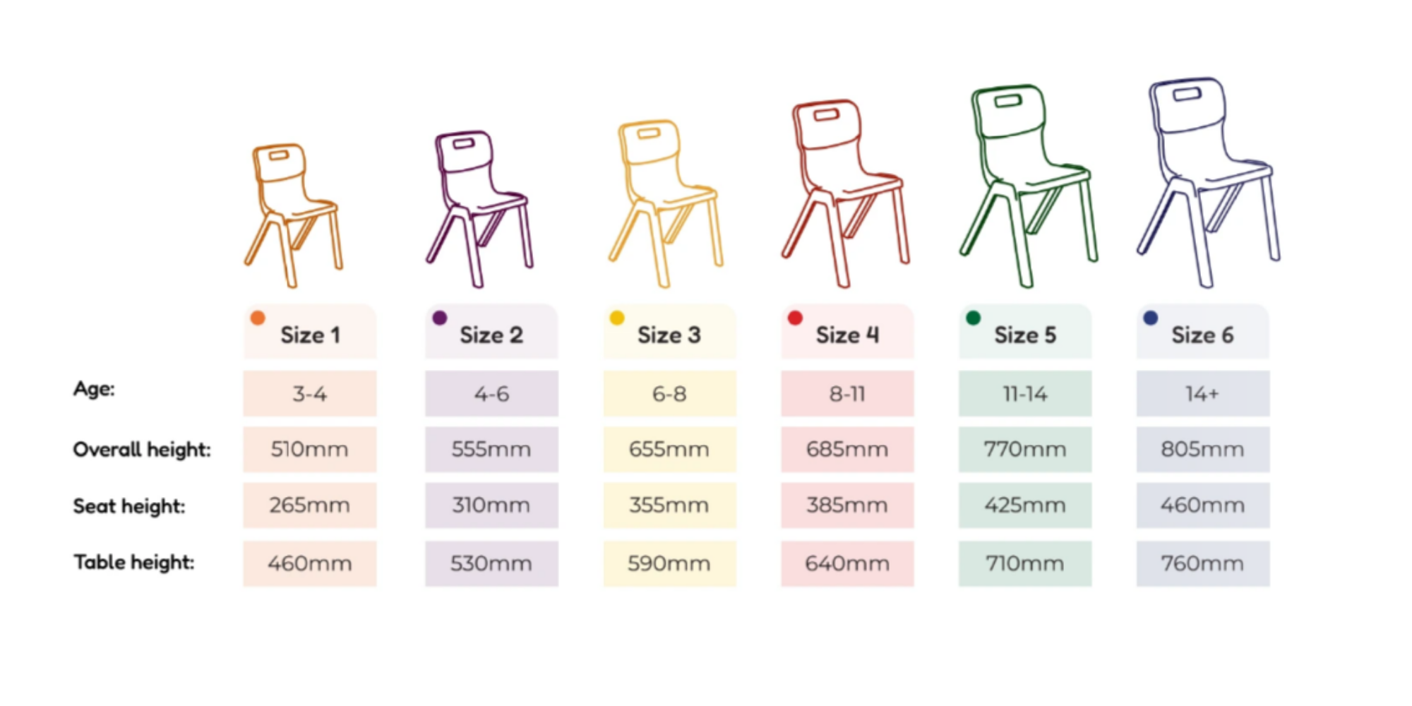 Postura + One Piece Classroom Chairs - H260mm - Ages 3-4 Years