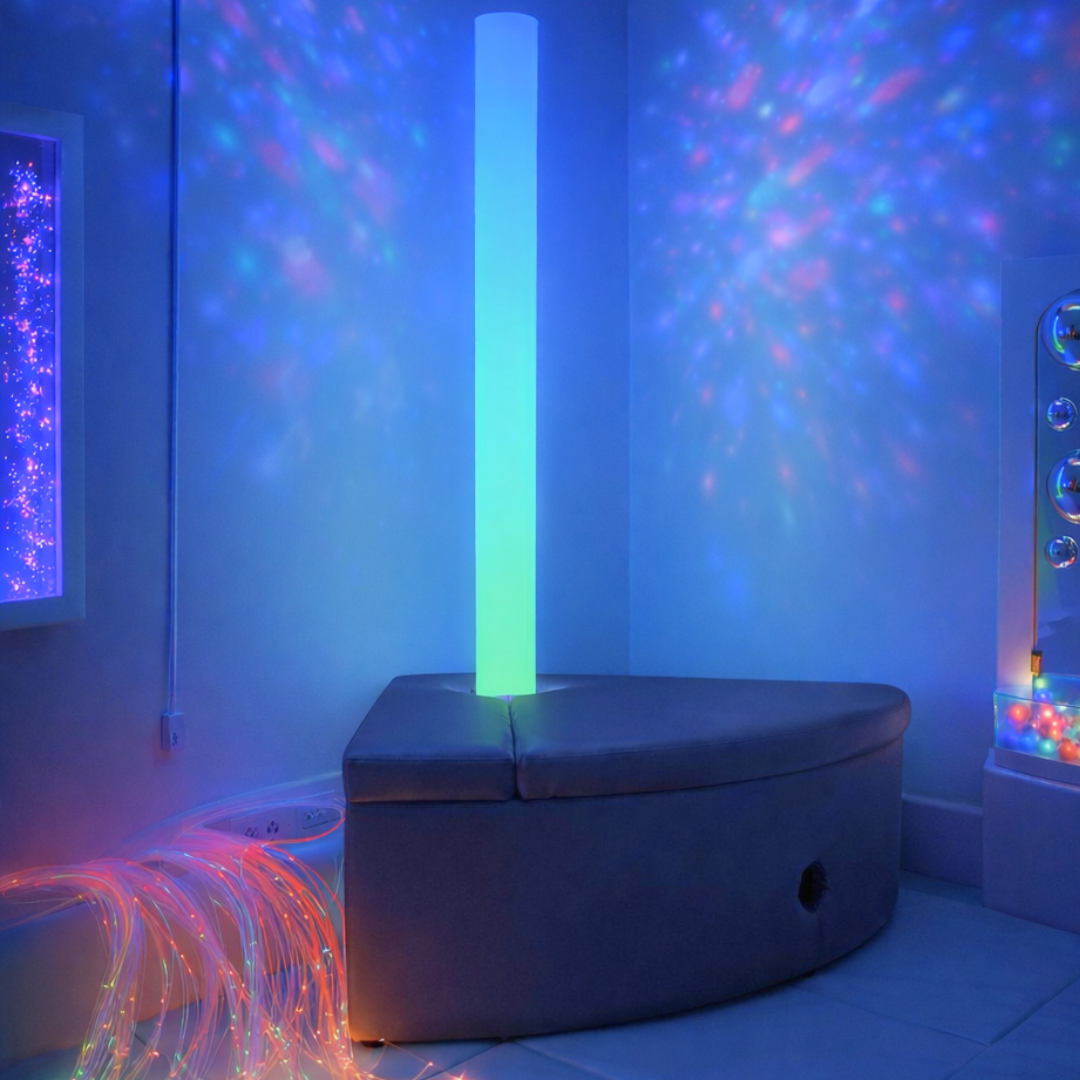 Sensory Waterless LED Light Tube 180cm & Grey Corner Padded Seat Plinth Base
