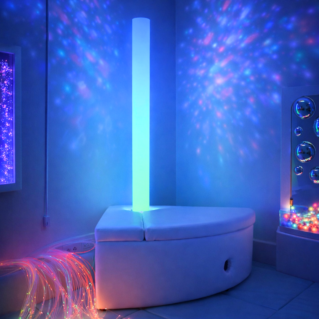 Sensory Waterless LED Light Tube 180cm & White Corner Padded Seat Plinth Base