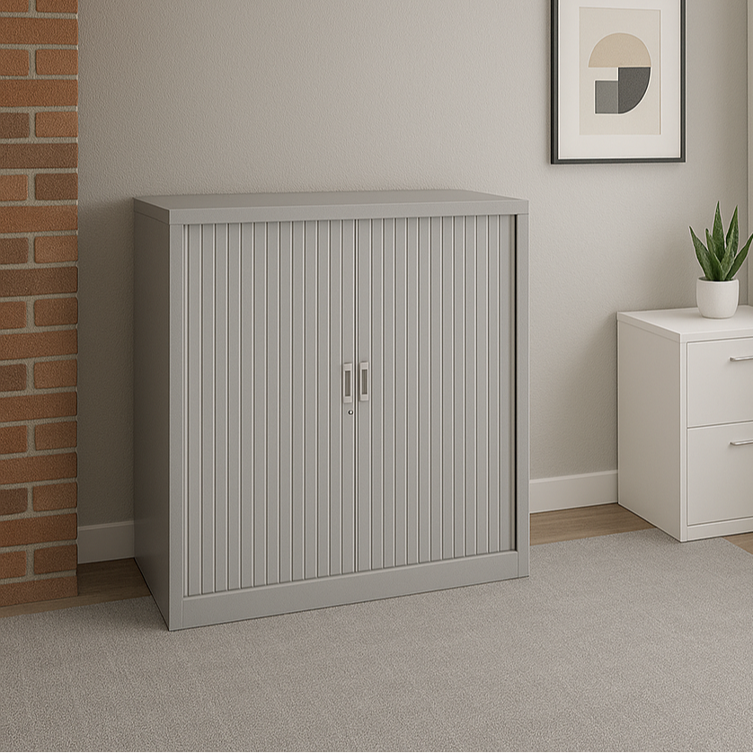 Tambour Open Steel Cupboards - Grey - H1050mm