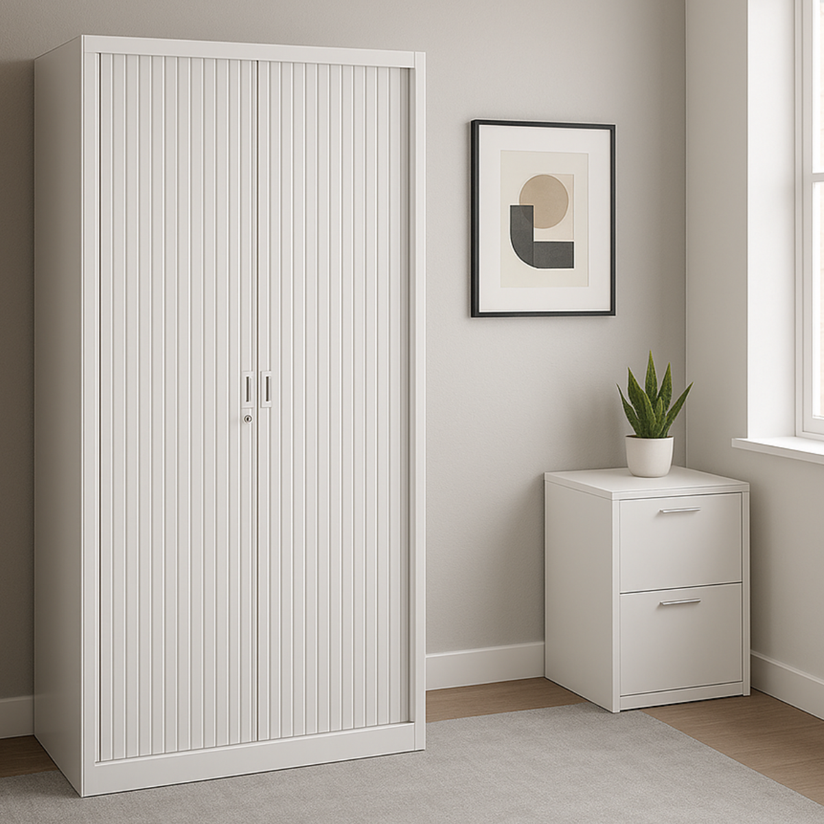 Tambour Open Steel Cupboards - Grey - H1050mm