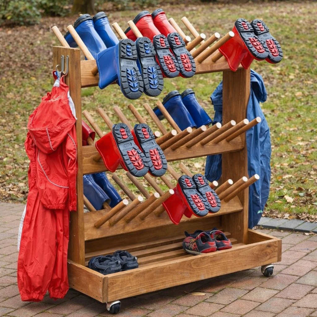 Outdoor Wooden Mobile Welly Storage