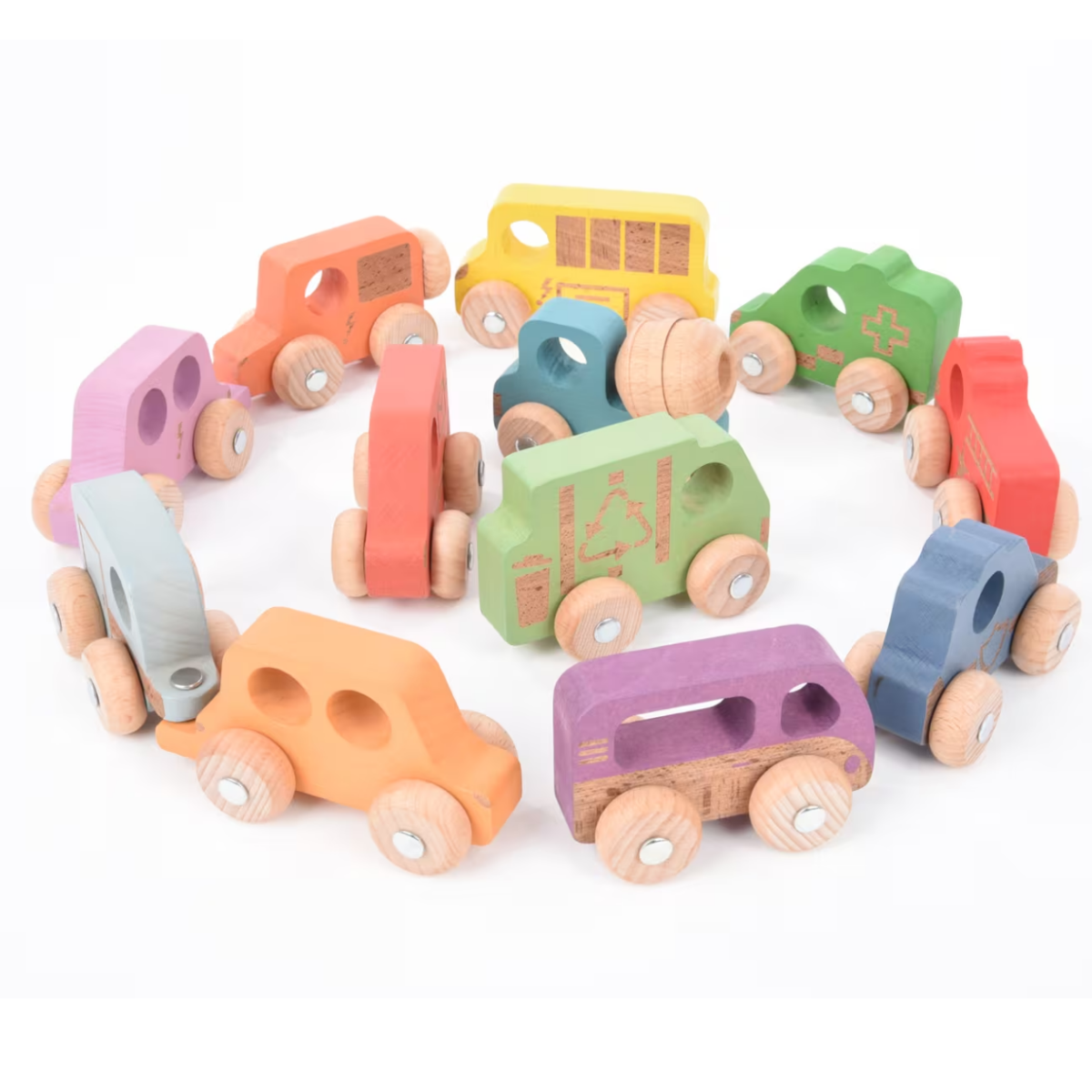 Rainbow Natural Wooden Vehicles Set - Pk12