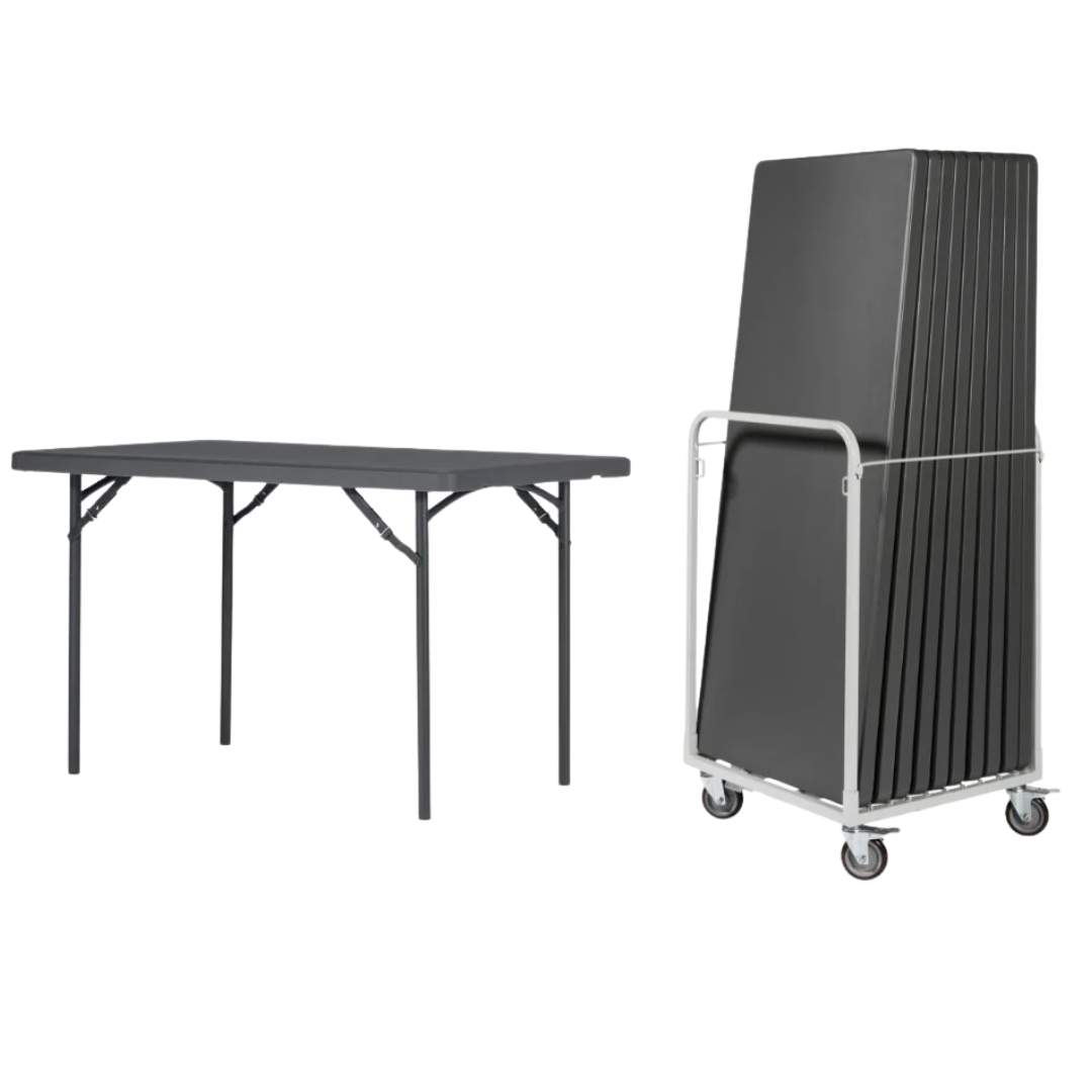 Zown Rectangle Folding Table Bundle - 10 Tables & Up Right Trolley - 4ft x 2ft 6in (1220 x 760mm)