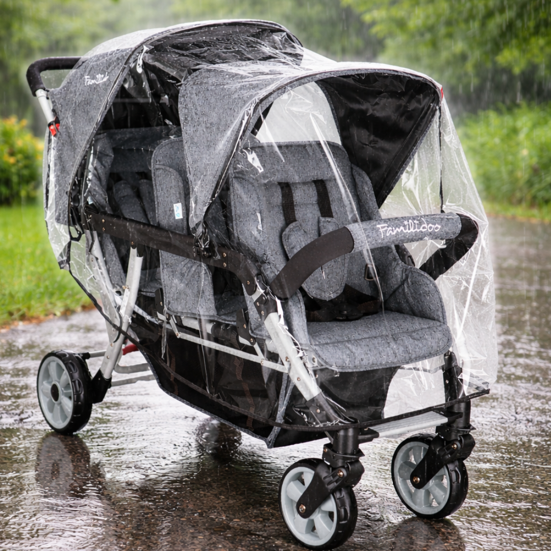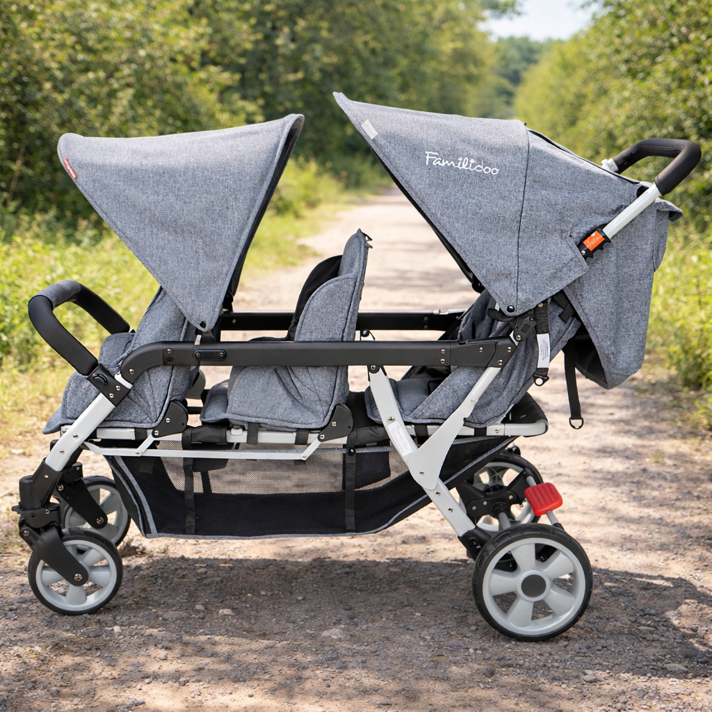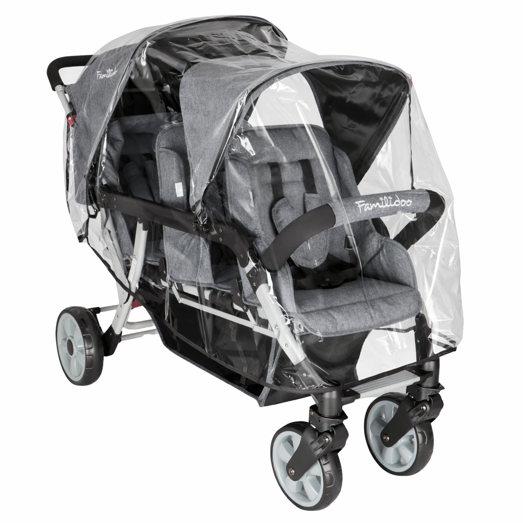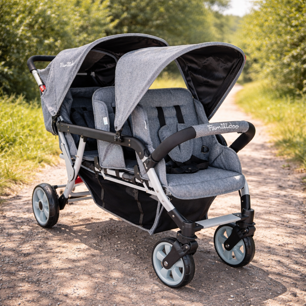 Familidoo Value Lightweight Grey Multi Seat Stroller - 3 Seater Pushchair + Free Rain Cover